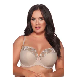 Biustonosz AV 2081 Blush to połączenie klasycznej elegancji z nowoczesnym designem. Model typu semi-soft został zaprojektowany, aby doskonale podtrzymywać i modelować biust, jednocześnie zapewniając maksymalny komfort noszenia. Górna część miseczek zdobiona transparentnym tiulem z subtelnym haftem, dodaje całości lekkości i wyrafinowanego stylu. Biustonosz wyposażono w regulowane, nieodpinane ramiączka z metalowymi regulatorami, a trzystopniowe zapięcie na dwurzędową lub trzyrzędową haftkę zapewnia idealne dopasowanie. To wyjątkowy wybór dla kobiet ceniących funkcjonalność, wygodę i piękno bielizny.