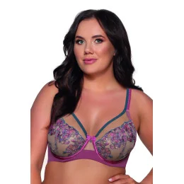 Brak fiszbin bocznych sprawia, że biustonosz jest wyjątkowo wygodny. Transparentny tiul wykończony lamówką w górnej części miseczek oraz uwodzicielski kwiatowy haft tworzą harmonijne i kobiece zestawienie. Dwu