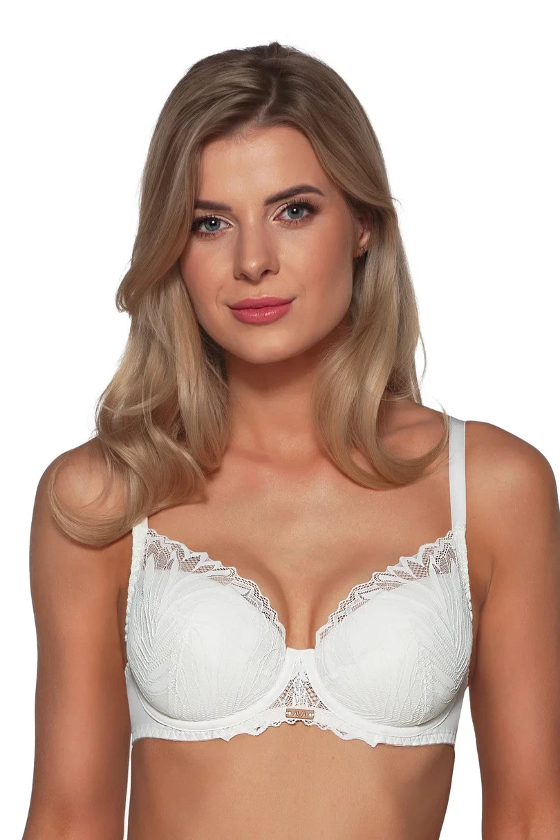 Podprsenka s vyztuženými push-up košíčky doplněnými měkkými polštářky je celá pokrytá složitě tkanou krajkou. Zakončení jemně přesahující okraj košíčků a ozdobný můstek krásně zdůrazňují hodnoty dekoltu. Teplá béžová a ušlechtilá černá umístěné na tělové pěně působí mimořádně vkusně a jemná ecru potěší okouzlujícím půvabem. K doplnění soupravy nezapomeňte sladit kalhotky typu tanga nebo klasické plné kalhotky.