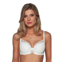 Podprsenka s vyztuženými push-up košíčky doplněná měkkými vycpávkami je celá pokrytá složitě tkanou krajkou. Jemně se překrývající košíčky a ozdobný můstek krásně zvýrazňují dekolt. Teplá béžová a ušlechtilá černá položené na pěně tělové barvy vypadají velmi vkusně, zatímco jemná ecru potěší svým půvabem. Aby byla sada kompletní, nezapomeňte si k ní pořídit tanga kalhotky nebo klasické plné kalhotky.