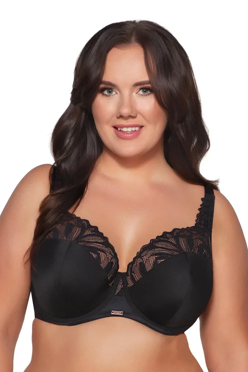 Košíčky jsou ve spodní části vyztužené měkkou pěnou, kterou z vnější strany pokrývá elastický úplet, zatímco horní část košíčků je vyrobena z hustě tkané květinové krajky, která hladce přiléhá k tvaru prsou a postupně stoupá na ramínko. Ozdobný můstek a pružný obvod prosvětluje kovová destička s logem, umístěná nejen ve středovém bodě mezi prsy, ale také vzadu u zapínání.