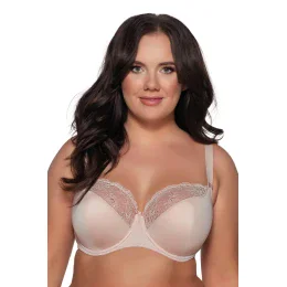 Gładki, elegancki biustonosz z miseczkami półusztywnianymi, miseczki wyścielone od spodu przyjemną dla ciała pianką unoszą i podtrzymują biust, zgrabnie kształtując go w dekolcie. Zdobiąca górne partie miseczek stabilna kwiatowa koronka zalotnie okrywa szczyty piersi, pozostawiając to, co ukryte wyobraźni. Dopracowana konstrukcja pozwala na stabilne utrzymanie biustonosza we właściwym miejscu, a szeroki obwód i ramiączka dbają o najwyższy komfort.