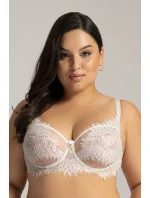 AV 2151 Bliss Semi Soft – powiew świeżości i delikatności zamknięty w zmysłowym biustonoszu. Kremowy ażur i subtelne przezroczystości przywołują na myśl lekkość wiosny. Miseczki semi soft, wyścielone od dołu miękką pianką, gwarantują stabilne podtrzymanie biustu, podczas gdy górna część z tiulu, wykończona lamówką, naturalnie formuje kształt piersi. Mleczna koronka, bogato zdobiona dziewczęcymi rzęskami, otula biust i bawet, delikatnie wychylając się poza biustonosz, dodając mu lekkości i wdzięku. Złoty detal z kryształowym oczkiem pomiędzy miseczkami dodaje blasku i przyciąga spojrzenia.