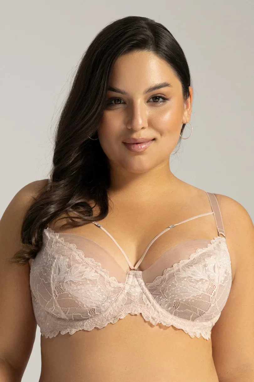 AV 2155 Fiesta Soft - okouzlující podprsenka - skutečné mistrovské dílo spodního prádla! Měkké košíčky z markýzy a tylu pokryté složitou krajkou se stříbrným leskem, která modelu dodává na eleganci. Neobvyklý, jemný odstín růžové barvy podtrhuje jemnost a romantiku podprsenky a ozdobný bufet jí dodává jedinečný půvab. Odepínací ozdobná ramínka zvýrazňují ženské křivky a zirkony na nich umístěné rozzáří dekolt a přitahují pozornost. Elastická ramínka a široký obvod zaručují dokonalé přizpůsobení, zatímco měkké košíčky účinně shromažďují a podporují poprsí. V kombinaci s podprsenkami vytváří komplet, který potěší každou ženu.