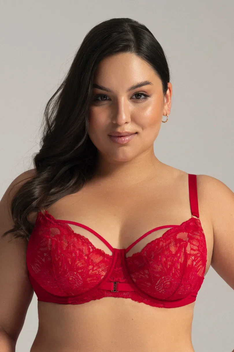 Elegancki i zmysłowy biustonosz Grace to propozycja, która z pewnością przyciągnie spojrzenia. Model ten to półusztywniany fason, który idealnie łączy wygodę z wyjątkowym designem. W dolnej części miseczek znajduje się miękka, beżowa pianka, która zapewnia stabilizację biustu, a w górnej – delikatny, transparentny tiul dodający lekkości i zmysłowości. Misternie tkana czerwona koronka pięknie zdobi całość, dodając bieliźnie luksusowego charakteru. Uroku dopełnia złota klamerka wysadzana cyrkoniami, umieszczona na subtelnie wyeksponowanym mostku, która podkreśla wyrafinowany styl tego biustonosza. Konstrukcja K-925 zastosowana w modelu AV 2157 gwarantuje idealne dopasowanie, wygodę noszenia oraz doskonałą stabilizację biustu, odciążając jednocześnie plecy i ramiona.