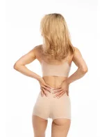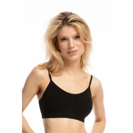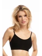 Biustonosz typu top wykonany z miękkiej dzianiny bambusowej, miseczki delikatnie usztywnione gąbeczką, bez fiszbin. Gąbeczki wyjmowane, ramiączka z regulacją, wkładany przez głowę. Posiada właściwości antybakteryjne i antyalergiczne.