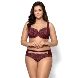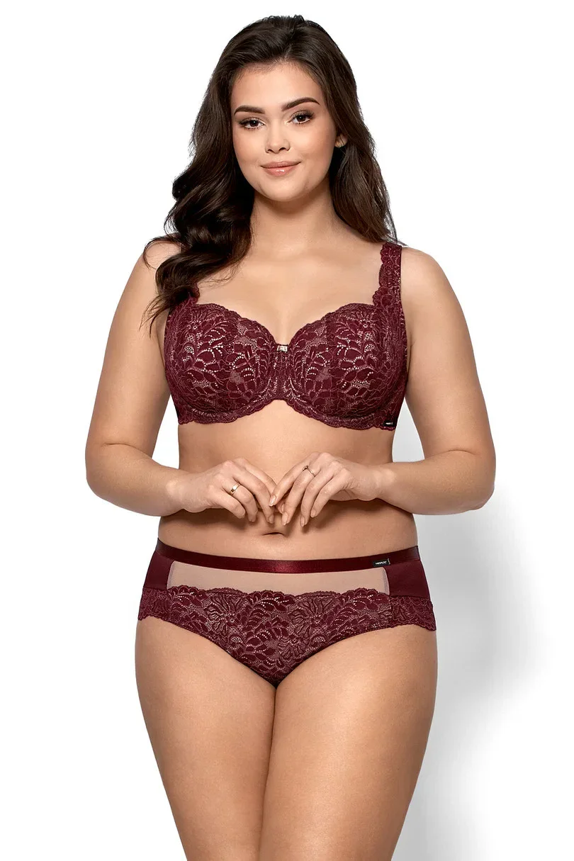 Vyztužená dámská krajková podprsenka ve vínové burgundské barvě.