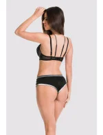 Béžové pěnové košíčky pokryté černou krajkou, oblouk kostic je krytý stříbrným tunelem a výstřih a záda zdobí nastavitelná ramínka.