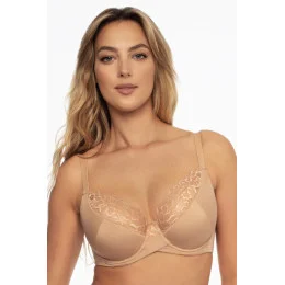 Poloměkká podprsenka, jejíž horní část košíčků je zdobená krajkou. Košíčky jsou vyrobeny z elastického úpletu, který je ve spodní části podšitý měkkou pěnou. Elastický obvod přilne k tělu a stabilizuje podprsenku. Potrójna háčkem a smyčkou, neodnímatelná ramínka v kombinaci s vyztuženou částí košíčků, takže poprsí je pěkně shrnuté dovnitř.