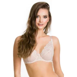 Měkká podprsenka, košíčky z kvalitní strukturální síťoviny, na které je našita krajka s květinovým motivem.