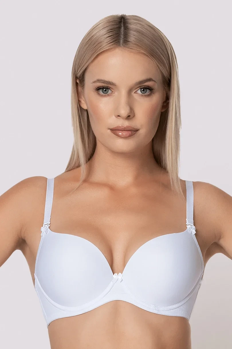 Klasická podprsenka s tepelně tvarovanými košíčky. Ideální pod bílé nebo vypasované halenky, nerýsuje se pod oblečením a krásně pozvedne a shrne poprsí. Nastavitelná ramínka, odepínací. Kovové háčky na zádech. Košíčky a zadní část z elegantního mikrovlákna. Vnitřní část košíčků z bavlny.