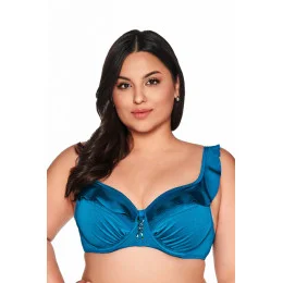 Biustonosz kąpielowy w barwach oceanu zaprasza do wakacyjnej przygody już od pierwszego spojrzenia. Miękkie miseczki typu SOFT z fiszbiną pod biustem pięknie podkreślają kształt piersi, dzięki czemu będziesz prezentować się wyjątkowo. Subtelna falbana na górnej części miseczek dodaje lekkości i podkreśla walory sylwetki, tworząc romantyczny i zwiewny efekt.