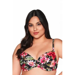 Biustonosz SK 219 SOFT to idealny wybór na letnie chwile, charakteryzujący się tropikalnym wzorem w postaci kwiatów i liści. Ten biustonosz kąpielowy łączy w sobie komfort i styl, dzięki czemu poczujesz się wyjątkowo podczas wakacji.