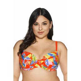 Biustonosz kąpielowy 226 FULL CUP wykonany jest z elastycznego materiału w energetycznych kolorach lata, łącząc neonową czerwień z różnorodnym motywem kwiatów. Usztywnione miseczki z fiszbinami doskonale podtrzymują i wyeksponują biust, zapewniając jednocześnie wygodę i styl.