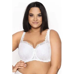 Vyztužená dámská podprsenka typu semi-soft. Krajka s květinovým motivem, vnitřní strana košíčků podšitá bavlnou, boky krajkové. Nastavitelná ramínka, nelze je odepnout. Model ideálně nadnáší a udržuje poprsí.