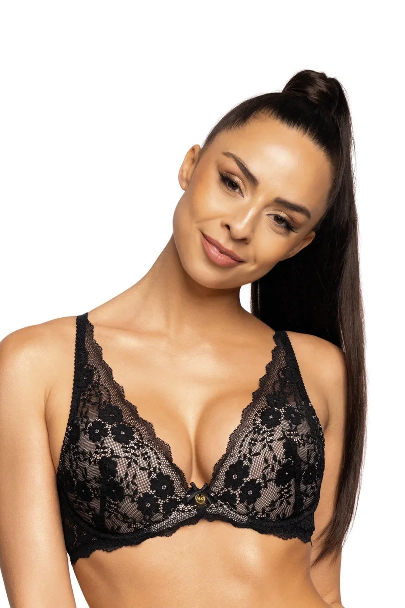 Push-up podprsenka s krajkovými košíčky podšitými béžovou bavlnou. Má odnímatelné push-up vložky a nastavitelná ramínka.