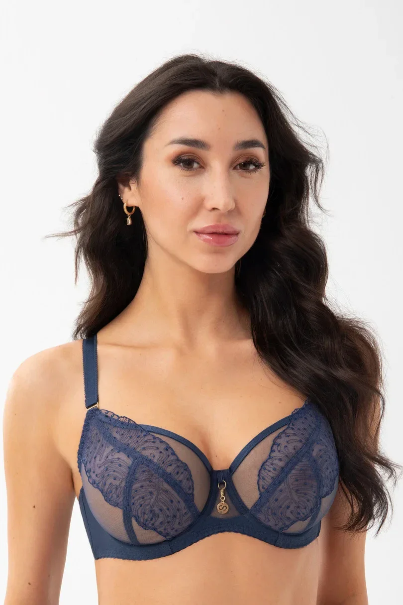 Měkká podprsenka určená pro ženy se středním a velkým poprsím. Zajišťuje efekt zvednutí a shrnutí poprsí dovnitř, 3dílné košíčky z výšivky na stabilním tylu. Horní okraj košíčku je zakončen páskem, plynule přechází do ramínek způsobujících lepší oporu poprsí. Na kosticích odnímatelné přívěsky s logem ve zlaté barvě. Zadní část z průhledné lycry zajišťující velmi dobré přizpůsobení a oporu. Boční velrybí kostice zabraňující shrnování látky. V závislosti na velikosti dvouřadé nebo třířadé háčky s třístupňovou regulací obvodu. Neodnímatelná, nastavitelná ramínka ve třech šířkách, u větších velikostí navíc zpevněná velurovou páskou. Kovové prvky v barvě světlého zlata (neobsahují nikl).