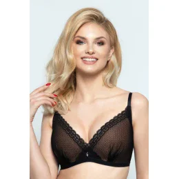 Podprsenka s push-up střihem, bez kostic. Košíčky jsou vyrobeny z pružné, béžové tepelně tvarované pěny, zdobené krásnou krajkou a plenami v černé barvě. Bez ramínek, nastavitelná ramínka. Třířadé třípolohové zapínání, takže si můžete dlouho užívat stabilní obvod spodního prádla.
