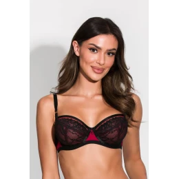 Obwód z bordowej mikrofibry, ozdobiony delikatną czarną koronką, zapewnia stabilność i wygodę noszenia. Brak bocznych fiszbin to dodatkowa zaleta, która podnosi komfort, szczególnie przy całodniowym użytkowaniu. Biustonosz został wykonany z wysokiej jakości materiałów, dzięki czemu jest trwały i zachowuje estetyczny wygląd na długi czas.