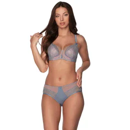 - košíčky z modré síťoviny a výrazné krajky, podšité pudrově růžovou bavlnou, s kosticemi