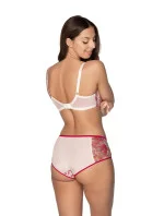 Giovanna je podprsenka s mimořádně pestrým květinovým vzorem, který jistě upoutá pozornost mnoha žen. Nejzajímavější pro mě bylo, že gór část košíčku je vyrobena z matného, stabilního tylu, který umožňuje stabilní tvar poprsí. Velmi zajímavé je také to, že je lemována přerušovanou stuhou v jemné rós barvě, která podprsence dodává jemnost a půvab. To však není vše, ještě zajímavější je, že spodní část košíčků je vyrobena z elastického potištěného tylu, který zajišťuje pohodlné nošení podprsenky Giovanna. Dalším úžasným bodem je, že boky a střed košíčku jsou vyztužené, takže podprsenka udržuje správný tvar a poskytuje maximální oporu. A teď to nejlepší nebo nejzajímavější - zadní část podprsenky Giovanna je vyrobena z tylu v barvě ecru a zdobí ji podšívka, která dodává eleganci a šik. Tento kousek vás zaujme tím, že kombinace tylu a kosticóna zadní straně podprsenky z něj dělá skutečně jedinečný kousek oblečení. Celkově podprsenka Giovanna vypadá krásně díky efektnímu tištěnému vzoru a stuze na košíčku, ale zároveň poskytuje pohodlí při každodenních aktivitách.