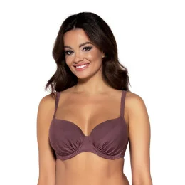 Sprawdzona forma w zachwycającej barwie gorącej czekolady zachwyci zwolenniczki minimalizmu. Prosty, starannie wykonany biustonosz kąpielowy SK 168/1 wyprofiluje piersi, zbierając je ku sobie i nieznacznie unosząc, co daje wyjątkowo naturalny efekt. Drapowania umieszczona u dołu misek rozchodzą się promieniście, optycznie zaokrąglając biust, a delikatny połysk dzianiny rozświetla ten jednokolorowy kostium. Aby uzupełnić całość dobierz koniecznie figi SF 168/3/1 z marszczonym panelem. Rozsmakuj się…