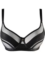 | Nový model měkké podprsenky je klasickým i netradičním návrhem, díky čemuž se hodí jak pro zvláštní příležitosti, tak pro každodenní nošení. Podprsenka je mimořádně pohodlná a stabilní a poskytuje celodenní pohodlí. Její měkké košíčky jsou vyrobeny ze stabilního tylu, který udržuje tvar prsou. Zadní část podprsenky je vyrobena z pracovního a elastického béžového tylu, který poskytuje dodatečnou pružnost. Překřížení zadní části s černými saténovými ramínky různé šířky vytváří jedinečný vzor, který dodává stylingu osobitý charakter. |