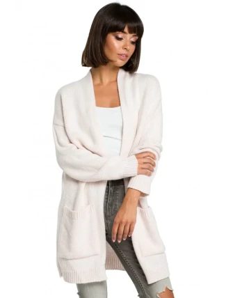 Dlouhý dámský župan z hřejivého měkkého úpletu s kapucí. Kapsy na úrovni boků, zavazování v pase.