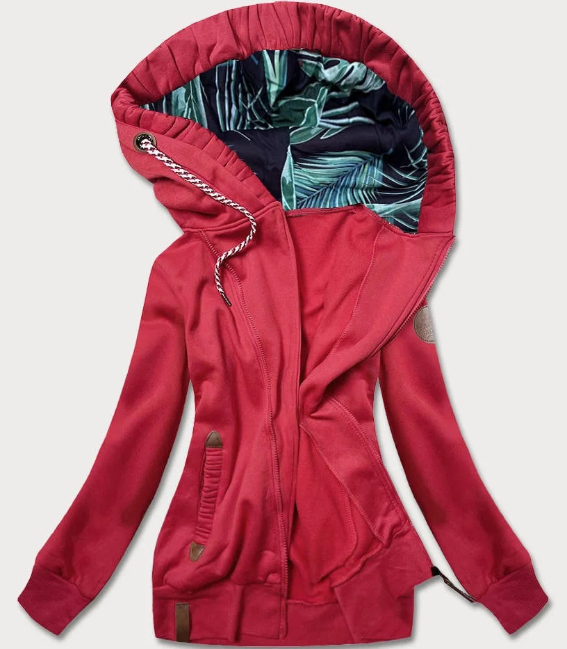 Červená dámská mikina s ozdobnou kapucí (AMG725-2)
