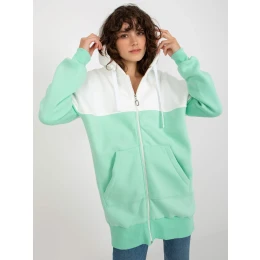 Ecru-mint mikina dlouhá basic s kapucí.