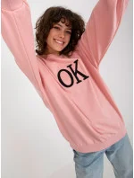 Světle růžová volná mikina s kapucí a nápisem .