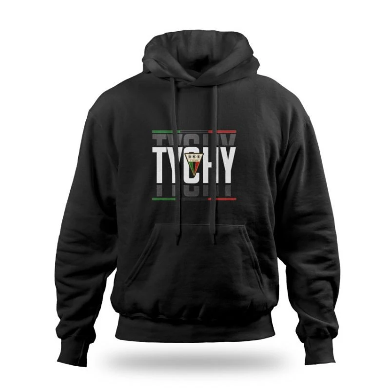 Bluza GKS Tychy Shadow To stylowa i funkcjonalna bluza z kapturem, stworzona z myślą o fanach klubu. Dzięki klasycznemu, czarnemu designowi i wysokiej jakości materiałom, bluza sprawdzi się zarówno na trybunach, jak i na co dzień. Głównw cechy: Wyjątkowy design: Na przodzie bluzy znajduje się napis "TYCHY" z efektem cieniowania oraz herb GKS Tychy, otoczony subtelnymi paskami w barwach klubowych, co podkreśla przynależność kibicowską. Wysoka jakość materiału: Wykonana z mieszanki 65% poliestru i 35% bawełny, bluza zapewnia trwałość, wygodę i odporność na codzienne użytkowanie. Odpowiednia izolacja cieplna: Gramatura 290 g/m² gwarantuje ciepło podczas chłodniejszych dni, jednocześnie zachowując komfort noszenia. Bluza GKS Tychy "Shadow" to idealny wybór dla każdego kibica, który ceni sobie wygodę i chce z dumą reprezentować barwy swojego klubu.