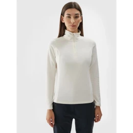 Dámská fleecová mikina 4F F031 krémová 4FAW23UFLEF031 12S Dámská fleecová mikina 4F je hřejivá vrstva (druhá vrstva), kterou lze nosit pod bundou nebo lyžařskou kombinézou. Hodí se například při lyžování, snowboarding, trekking, běh nebo každodenní použití. Vystavený výstřih s vysokým límcem. Krátký zip u krku zakončený nášivkou chránící bradu. Je vyrobena z měkkého a lehkého mikrofleecu. Technologie 4FWarm podporuje udržování stálé tělesné teploty.materiál: 100% polyester