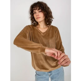 Velbloudí velurová mikina bez kapuce s výstřihem do V .