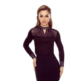 - výstřih a manžety ze síťoviny zdobené krajkou