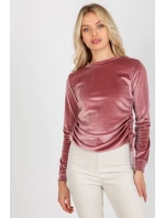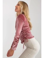 Krátká velurová halenka s dlouhými rukávy a kulatým výstřihem. Vazby na bocích pro nastavení délky.