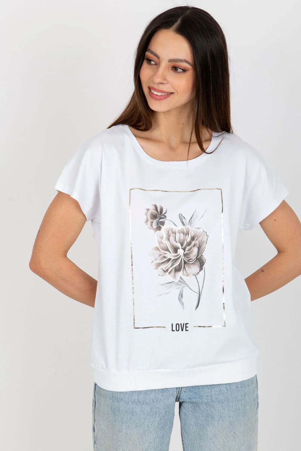 Bavlněná halenka s krátkými rukávy a kulatým výstřihem. Dekorativní potisk na přední straně.