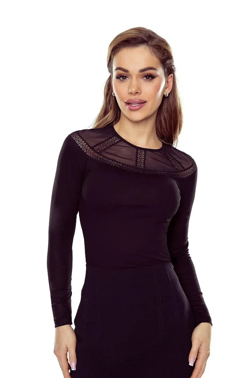 Dámská viskózová halenka s dlouhými rukávy, top zakončený jemnou síťovinou.