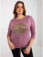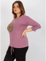 Špinavě růžová plus size halenka s žebrovaným lemem .