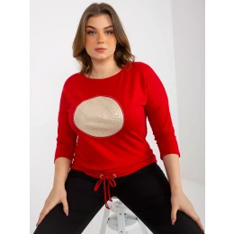 Červená plus size halenka s potiskem a 3/4 rukávy .