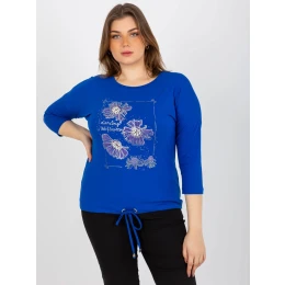 Tmavě modrá dámská halenka plus size s potiskem .