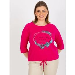 Fuchsiová plus size halenka s nápisy a aplikacemi .