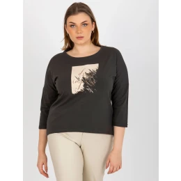 Khaki plus size halenka s potiskem a 3/4 rukávy .