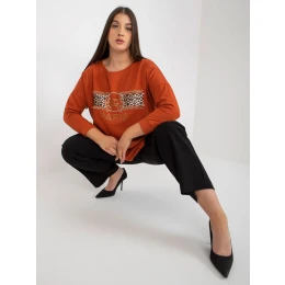 Cihlová plus size halenka s aplikacemi .