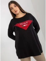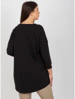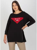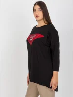 Černá plus size halenka s aplikací a potiskem .
