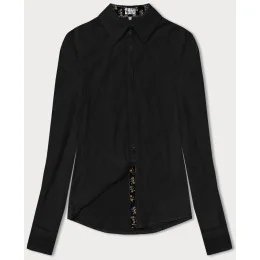 Halenka je ušitá z lehce pružného materiálu a zapíná se knoflíčky. Model má délku k bokům.