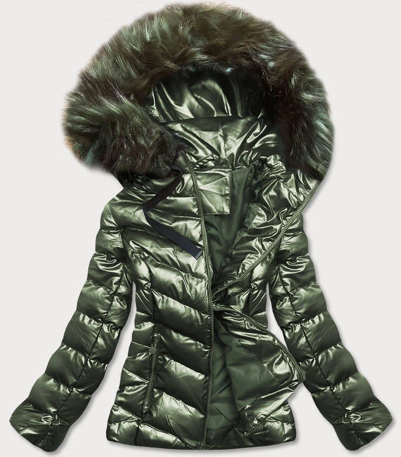 Zelená lesklá dámská zimní bunda s kapucí (5m773-238)