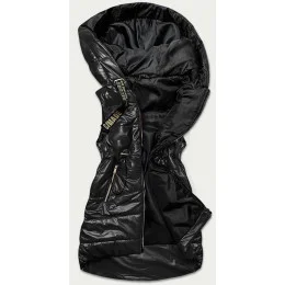 Lesklá černá vesta s kapucí (B8130-1)