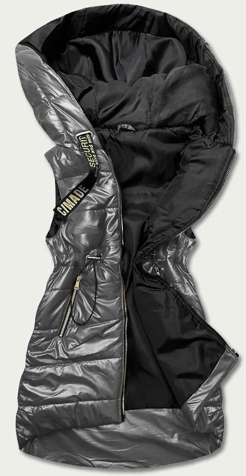 Lesklá vesta v grafitové barvě s kapucí (B8130-70)