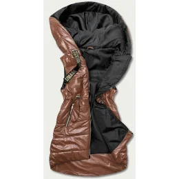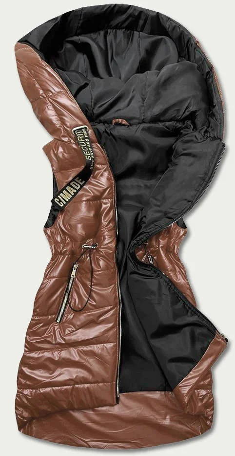 Lesklá vesta v karamelové barvě s kapucí (B8130-14)